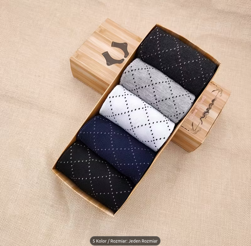 5-pak męskich codziennych skarpetek do połowy łydki, wzór geometryczny, 95% poliestru 5% elastan. Jeden rozmiar uniwersalny (38-44)