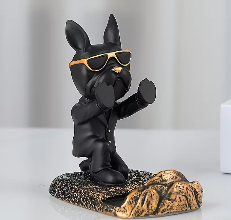 Mała Ozdoba w Kształcie Francuskiego Buldoga - Uchwyt na Telefon Komórkowy, Dekoracja Biurka