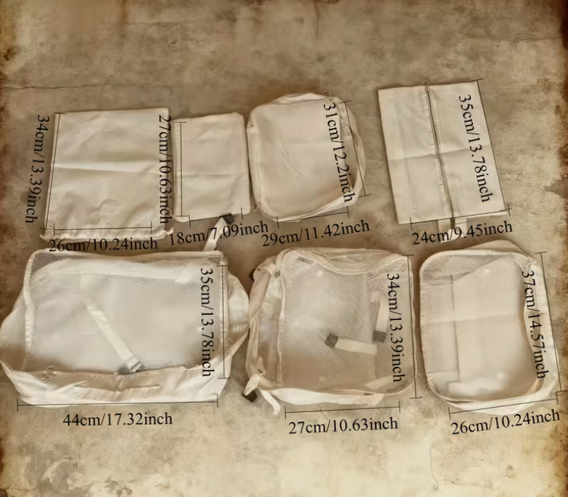 7-częściowy Zestaw Organizerów Podróżnych z Przegródkami na Zamek Błyskawiczny - Zmywalny, Przenośny i Wielorazowy Organizer do Bagażu na Ubrania, Buty i Niezbędne Akcesoria Podróżne, Organizer na Akcesoria Podróżne Przegródki na Zamek Błyskawiczny.