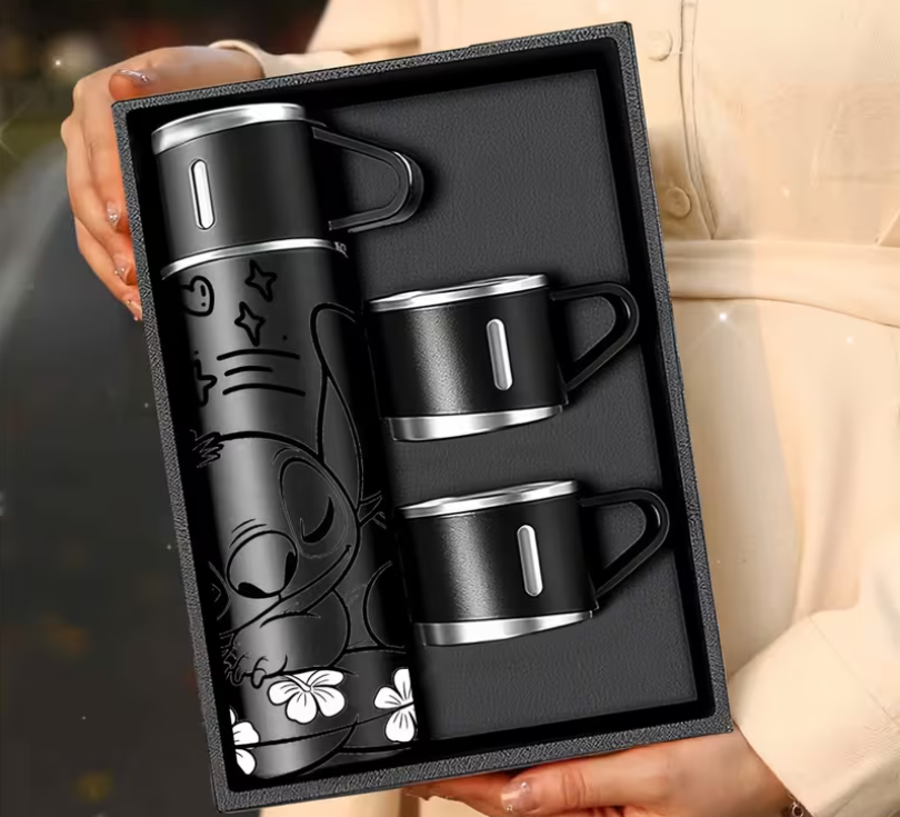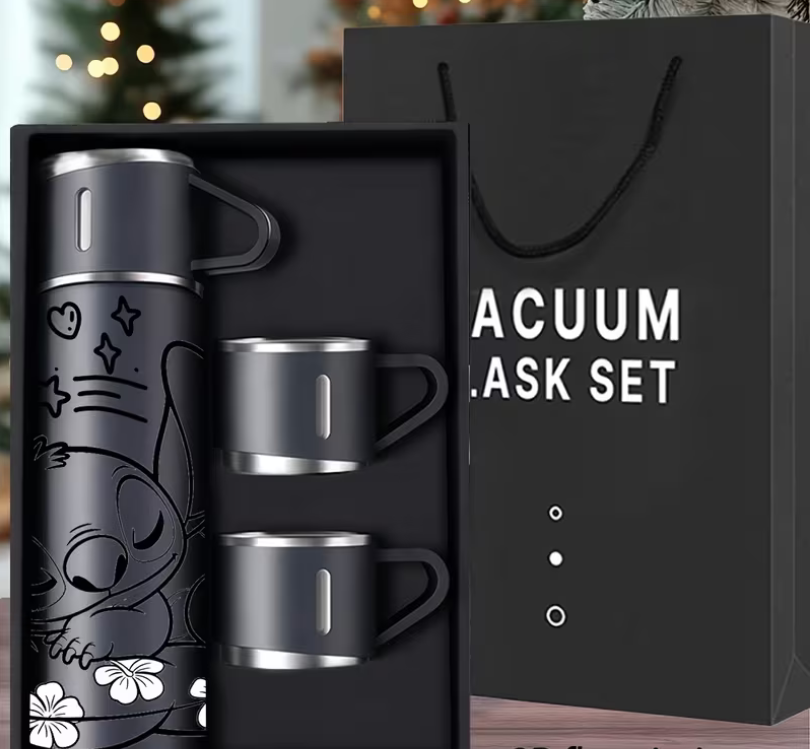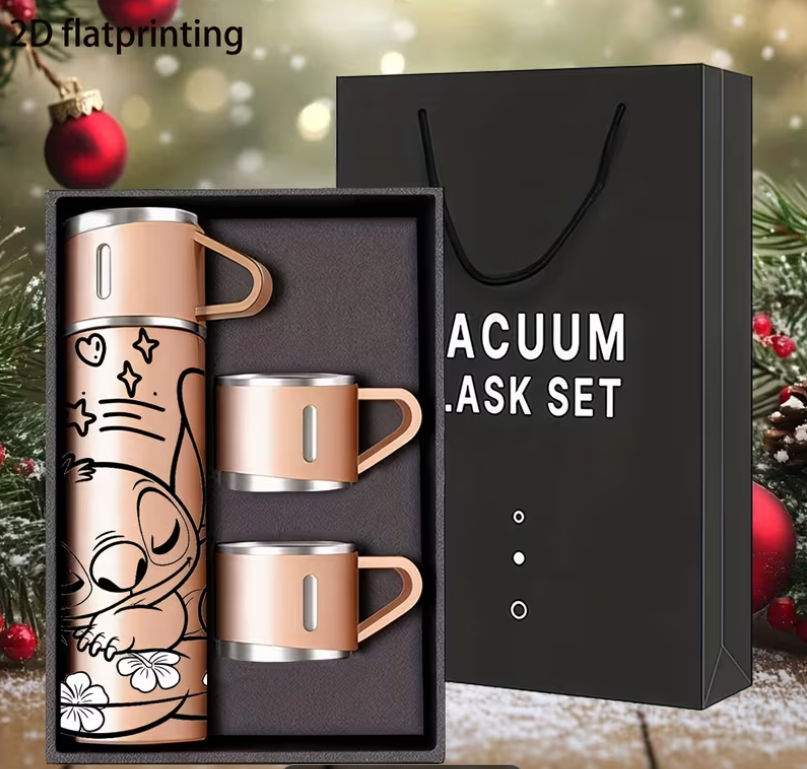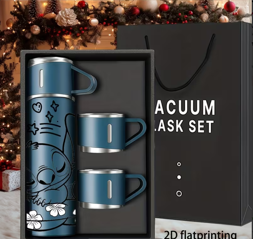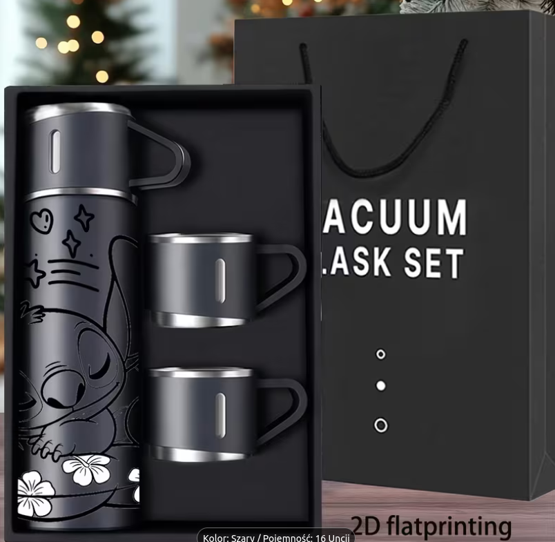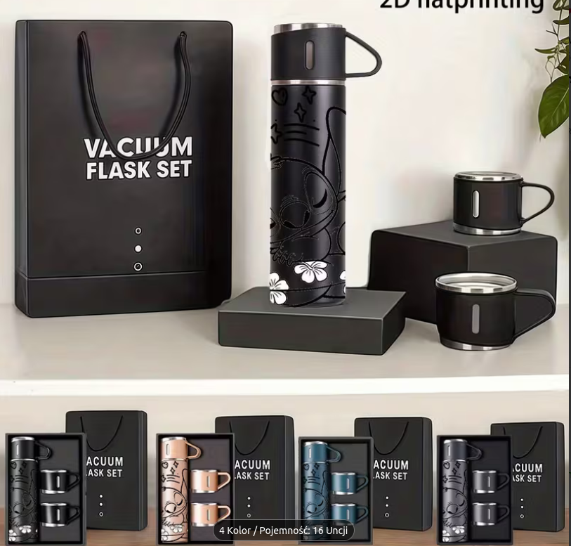 Zestaw Termicznych Kubków ze Stali Nierdzewnej z Motywem Stitcha - Utrzymują Napoje Gorące lub Zimne przez Godziny, Płaski Wzór 2D, Idealny na Rower, Wędrówki, do Biura, Szkoły, Kempingu i Podróży